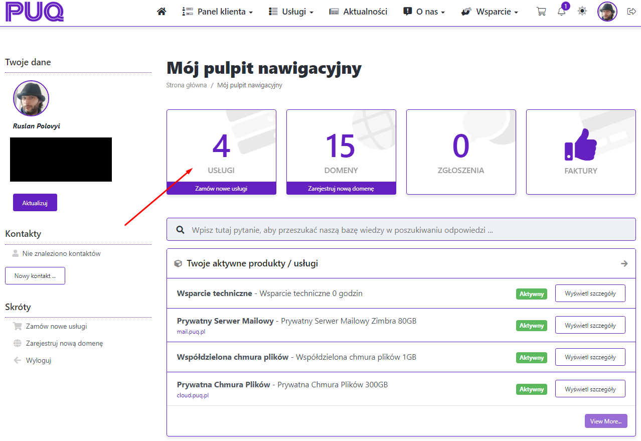 Zaloguj się do panelu klienta. Jak się załogować?Na Panelu znajdziesz "Skróty" Kliknij...