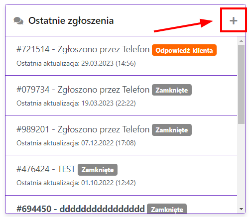 Na Panelu znajdziesz "Ostatnie zgłoszenia"