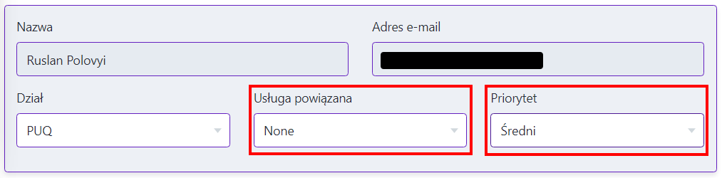 Zwpóć uwagę na parametry "Usługa powiązana" oraz "Priorytet"