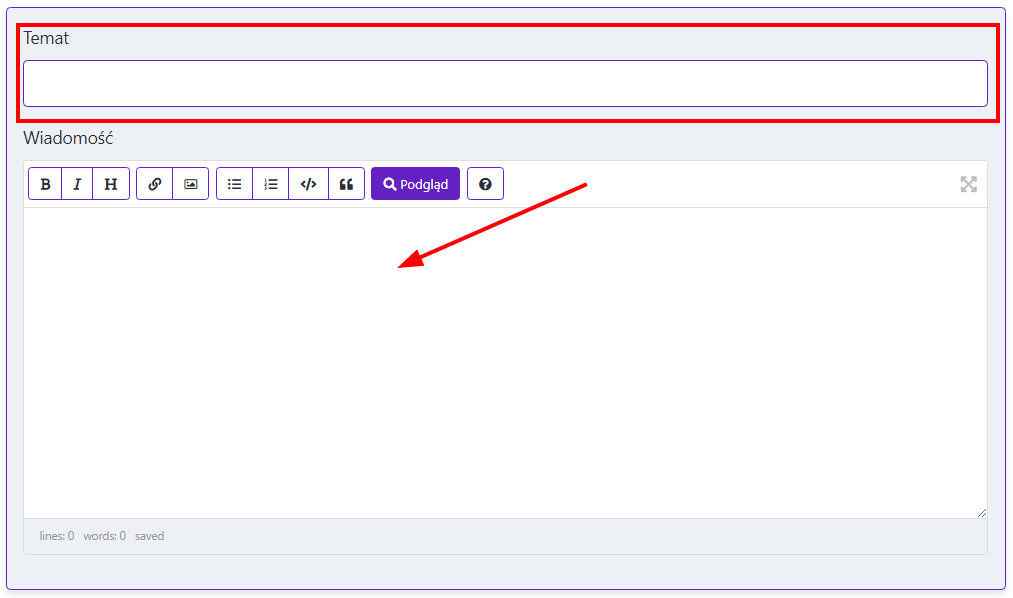 Napisz temat swojego zgłoszenia oraz treść wiadomości