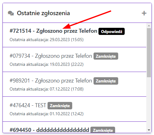 Kliknij na zgłoszenie, na które chcesz odpowiedzieć.
