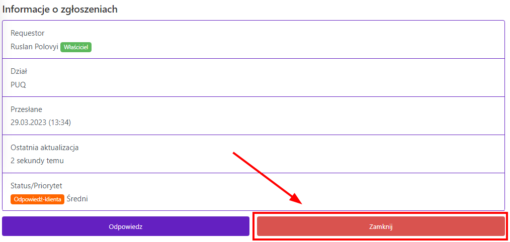 Zamknąć zgłoszenie