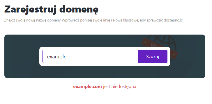 - Jeśli domena jest zajęta, wyszukaj inną