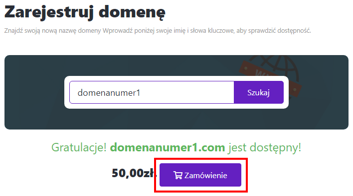 - Jeśli domena jest dostępna, dodaj ją do koszyka