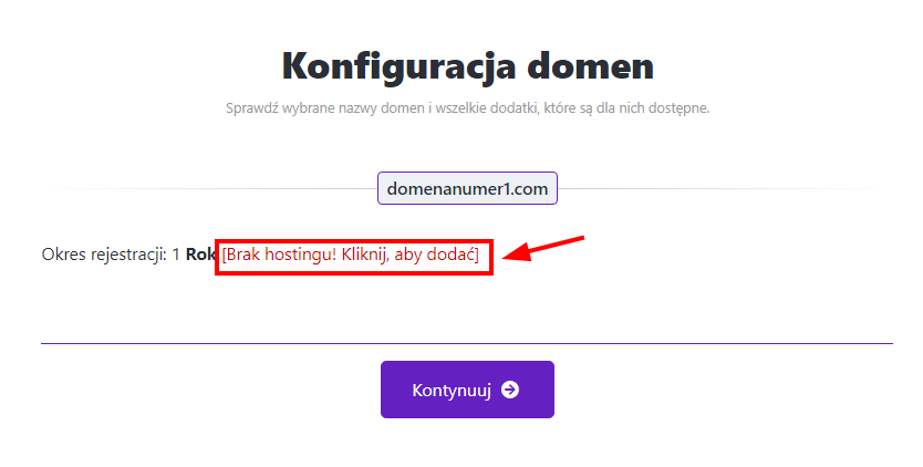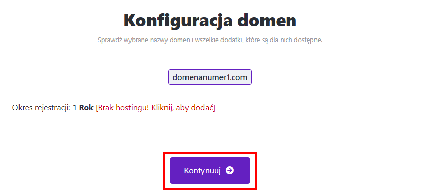 - Jeśli nie potrzebujesz hostingu, kliknij "Kontynuuj"