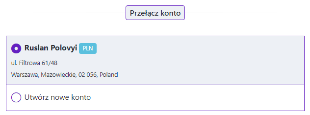- Wybierz konto rozliczeniowe