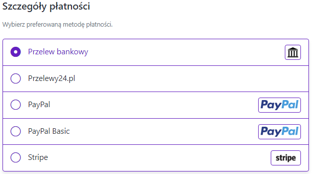 - Wybierz metodę płatnośći