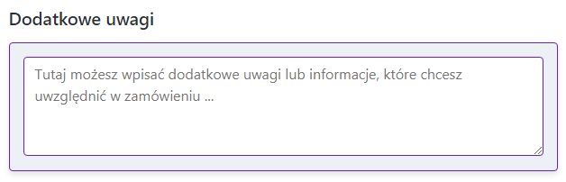 - Jesli masz dodatkowe uwagi, możesz wpisać ich w "Dodatkowe uwagi"