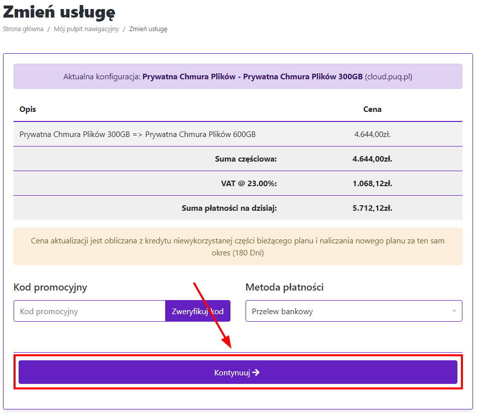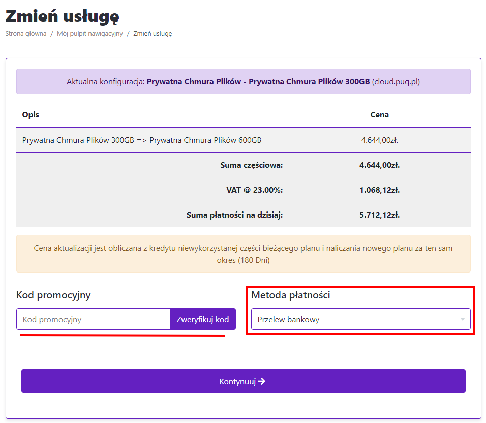 - Wybierz metodę płatności oraz, jeśli posiadasz, wpisz kod promocyjny