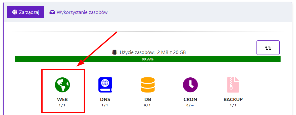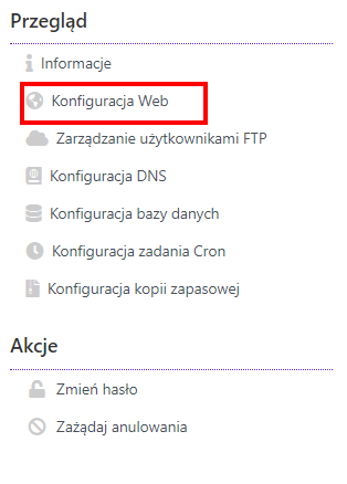 Kliknij "Konfiguracja Web" lub na ikonkę "WEB"