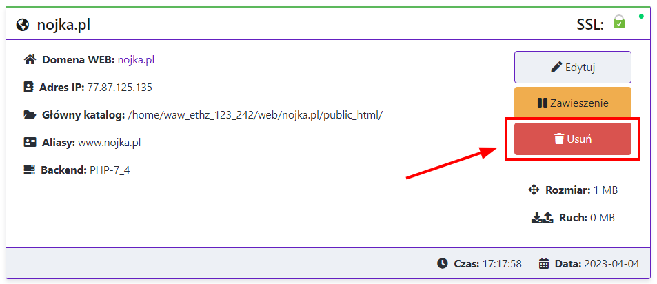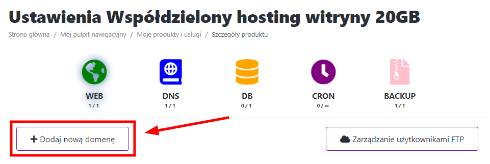 Aby dodać nową domenę, kliknij "Dodaj nową domenę".