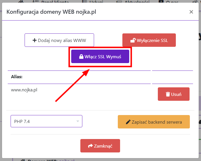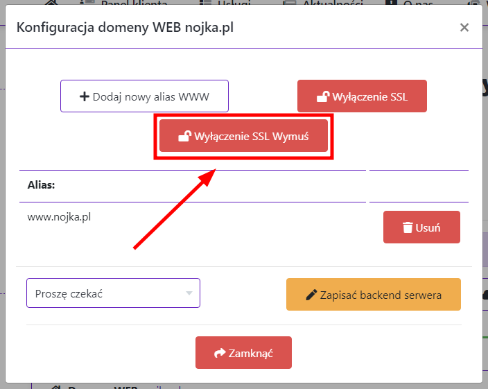 - Możesz go wyłączyć, klikając "Wyłączenie SSL Wymuś"