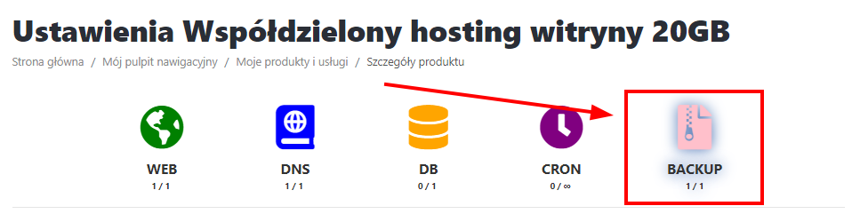 Kliknij "Konfiguracja kopii zapasowej" lub na ikonkę "Backup"