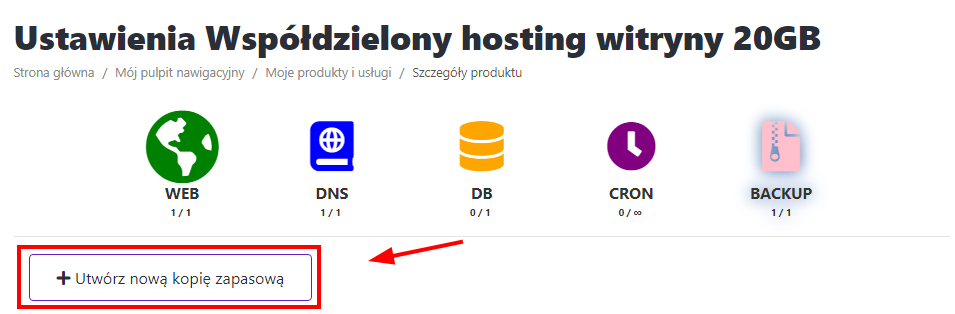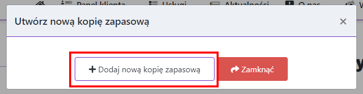 Aby utworzyć nową kopię zapasową kliknij odpowiedni przycisk