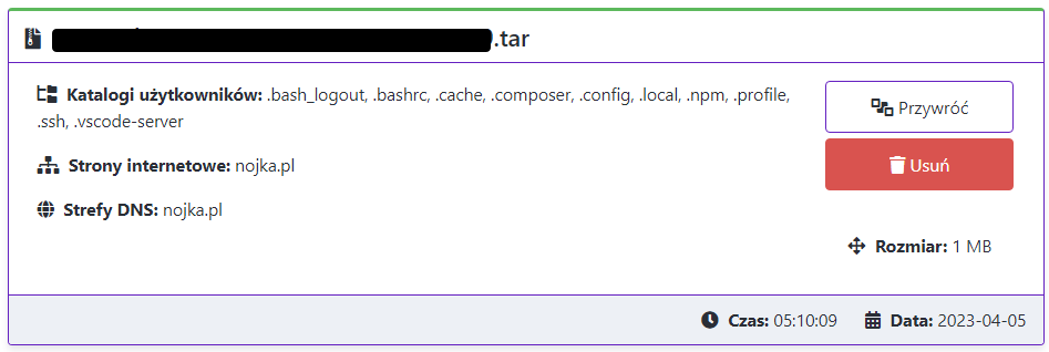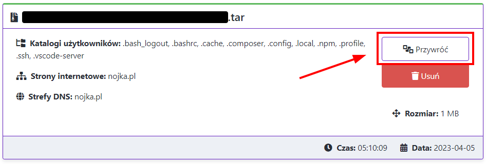 Jeśli chcesz przywrócić kopię, kliknij "Przywróć"