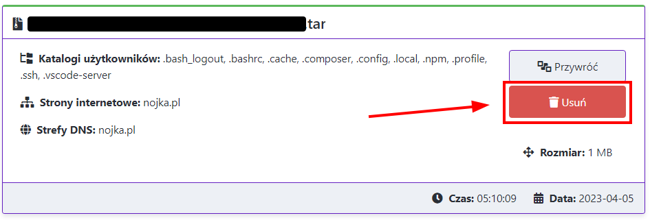 Aby usunąć kopię, kliknij odpowiedni przycisk