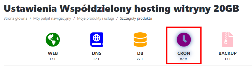 Kliknij "Konfiguracja zadania CRON" lub na ikonkę "CRON"
