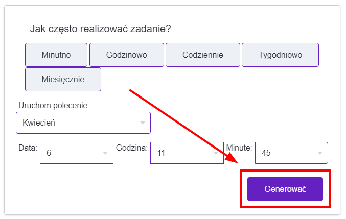 Cron będzie się generował co godzinę w 45 minut