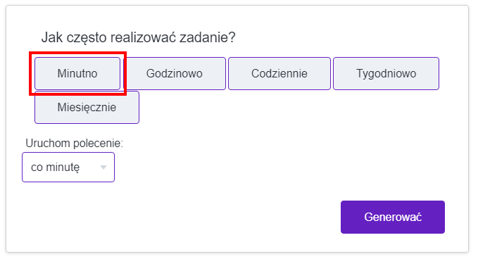 Cron będzie się generował co 2 minuty