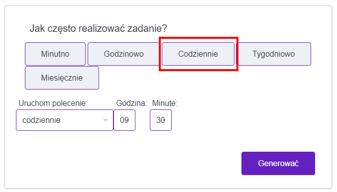 Cron będzie się generował codziennie o 9:30
