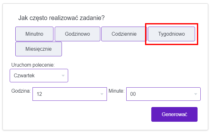 Cron będzie się generował coczwartku o 9:40