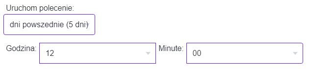 Cron będzie się generował co każdego powszedniego dnia (pn, wt, śr, czw, pt) o 12:00