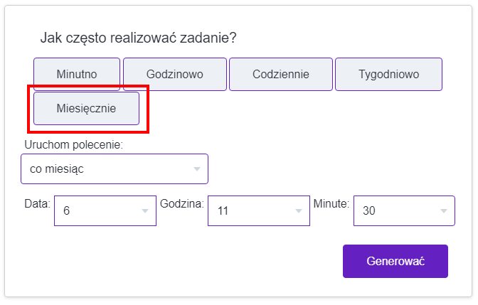 Dalej znajdziesz kilka przykładów konfiguracji zadania Cron