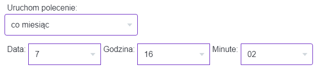 Cron będzie się generował co miesiąc 7 dnia miesiąca o 16:02